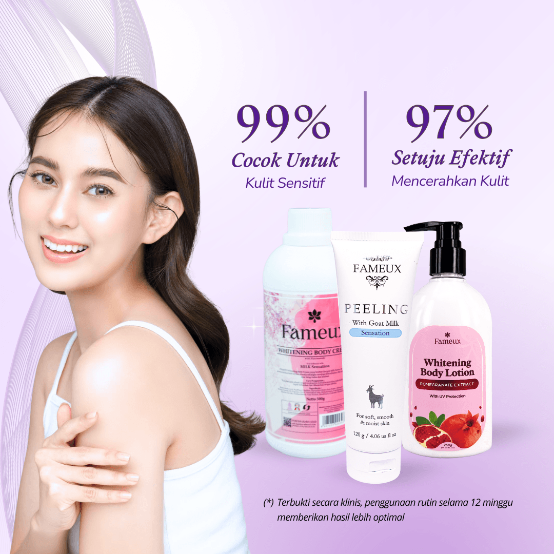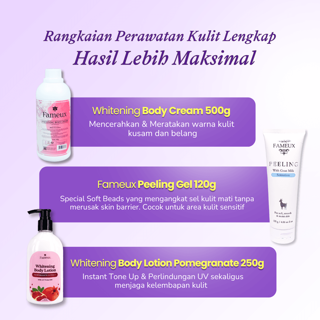 2.FAMEUX WHITENING BODY CREAM ukuran 500 ml Manfaat :