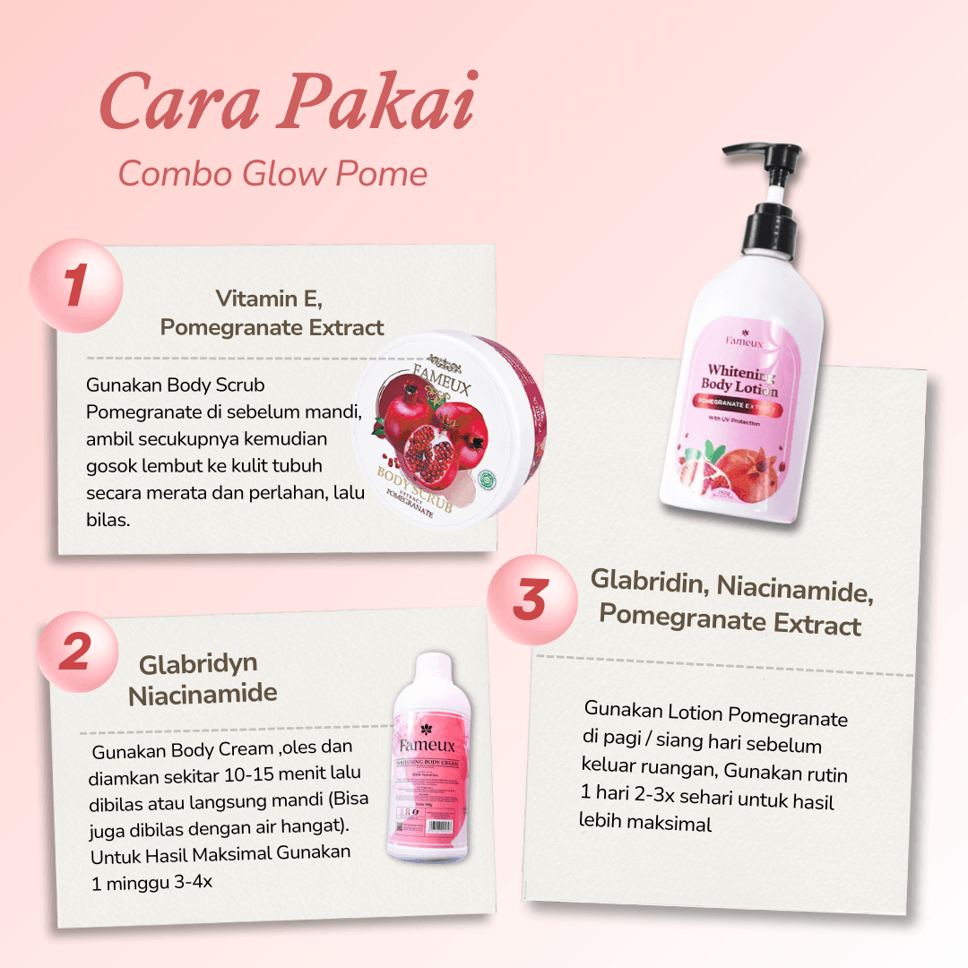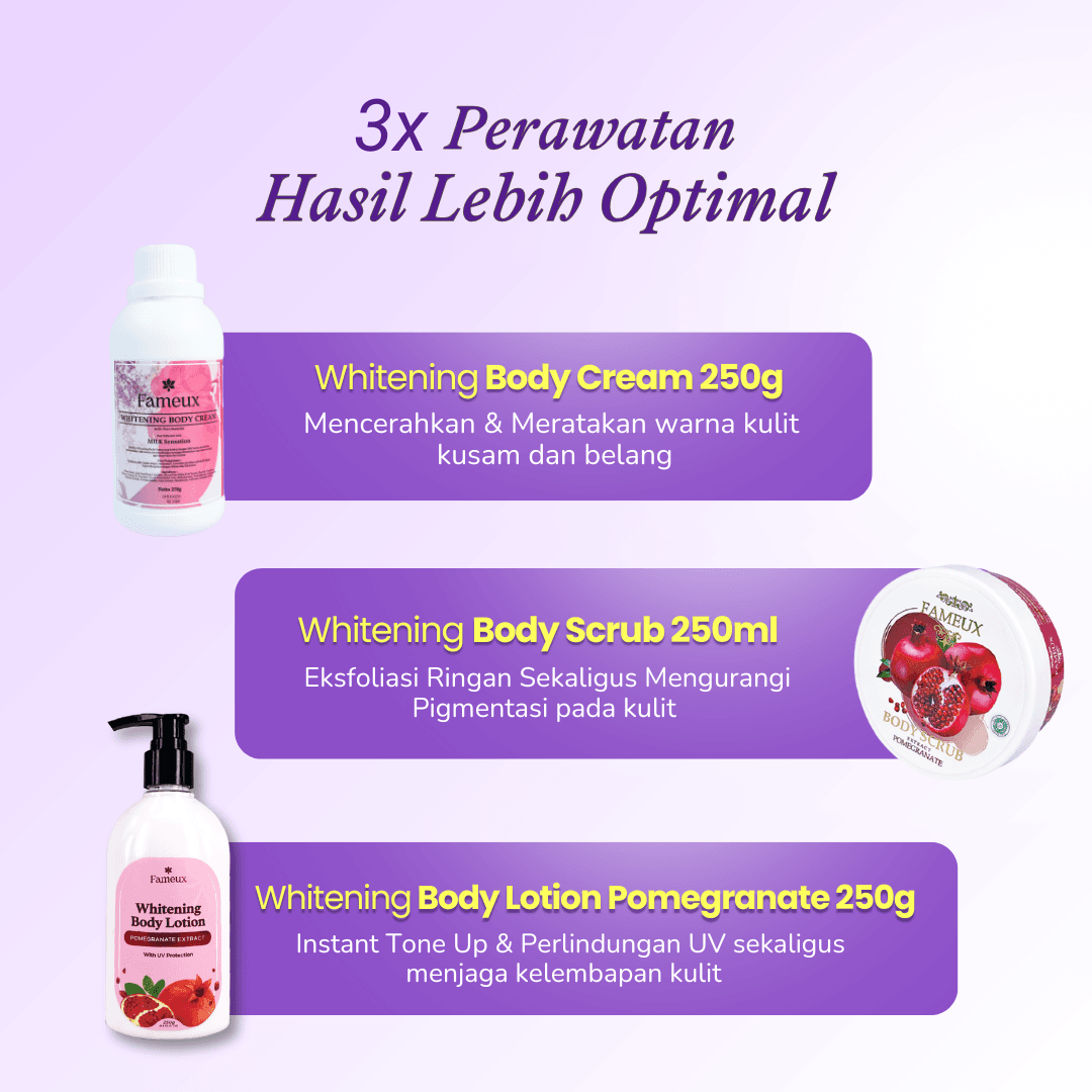 Fameux Paket Whitening Pomegranate (Body Cream + Lotion + Scrub Pome)