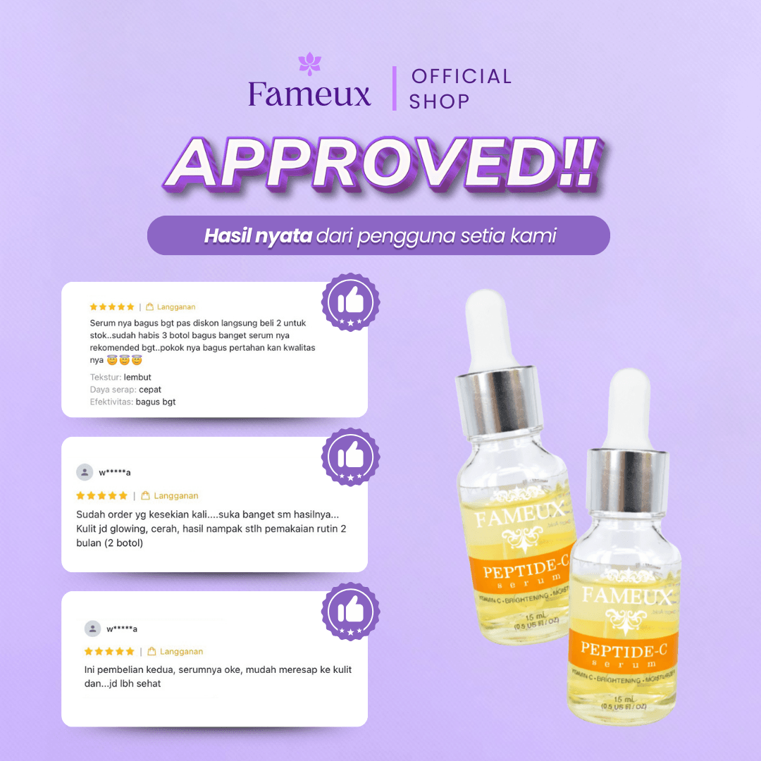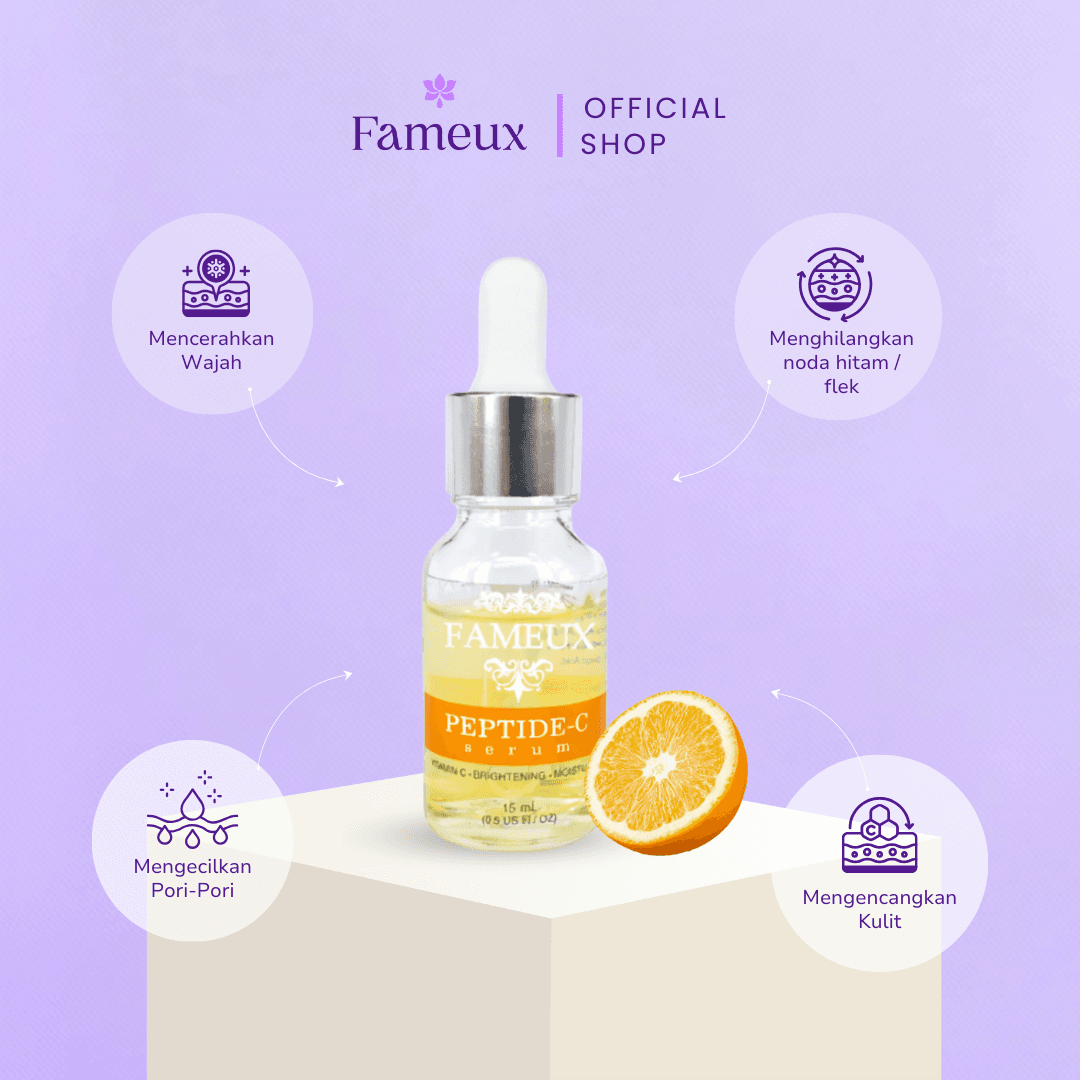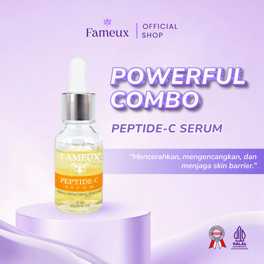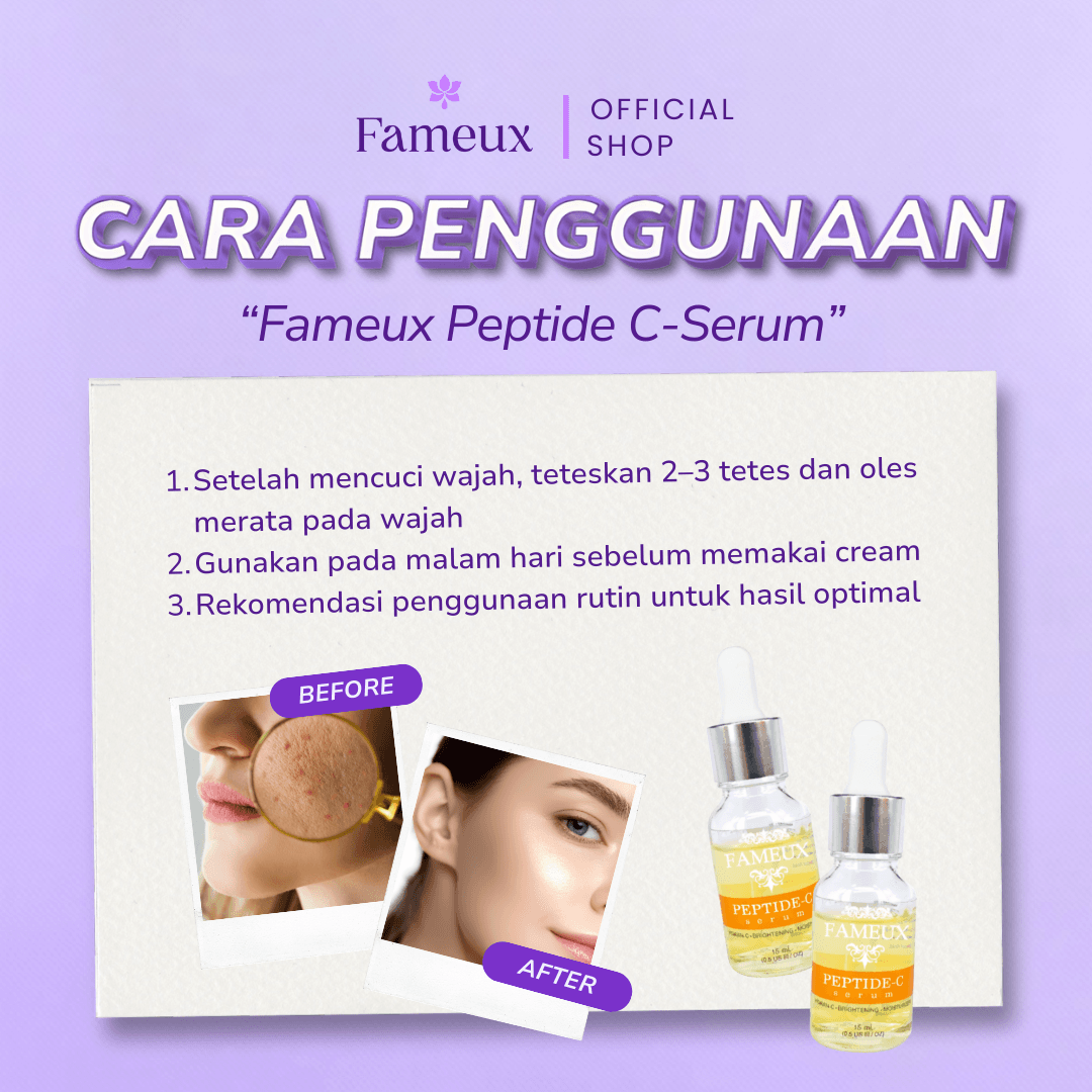 Teteskan FAMEUX PEPTIDE-C SERUM pada Lotion yang telah dikeluarkan tadi ratakan